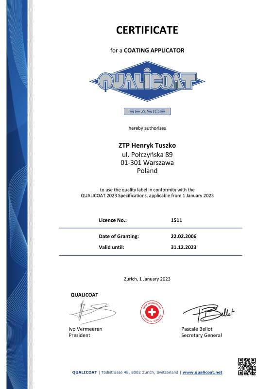 Działalność w branży lakierowania proszkowego w oparciu wymagania technicze Qualicoat jest dla nas priorytetem. Od 2006r. posiadamy licencję Qualicoat nr 1511, którą w 2022r. rozszerzyliśmy o atest Seaside. Cały proces malowania jest ściśle kontrolowany zgodnie z Wymaganiami Technicznymi znaku jakości Qualicoat dla farb, lakierów i powłok proszkowych na aluminium do celów architektonicznych. Proces produkcji jest stale monitorowany, a przestrzeganie procedur znaku jakości Qualicoat kontrolowane jest przez niezależnych inspektorów.